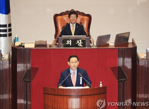 | ▲ 주호영 미래통합당 원내대표가 21일 오전 서울 여의도 국회에서 열린 본회의에서 교섭단체 대표연설을 하고 있다[출처=연합뉴스] |
