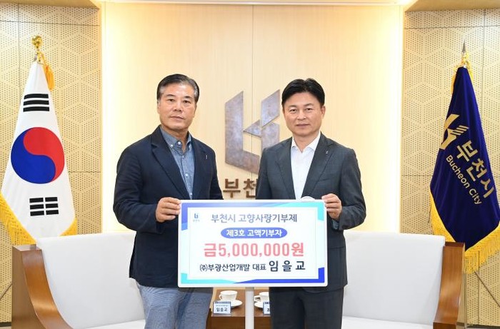 [코리아 이슈저널=홍춘표 기자] 부천시는 지난 25일 ㈜부광산업개발 임을교 대표가 고향사랑기부금 500만 원을 기탁했다고 28일 밝혔다.
