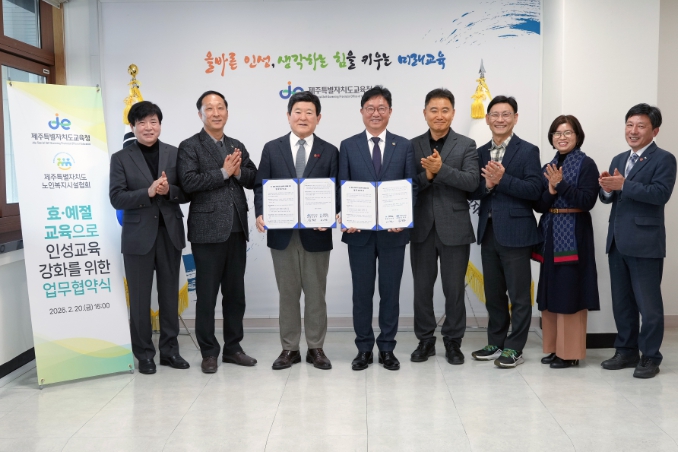 [코리아 이슈저널=김태훈 기자] 제주특별자치도교육청은 20일 제주특별자치도노인복지시설협회와 ‘효·예절 교육으로 인성교육 강화를 위한 업무협약’을 체결했다.