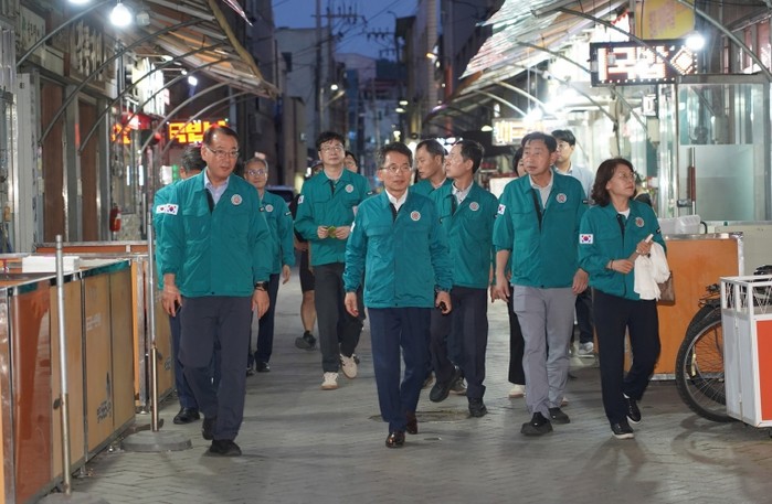 | ▲ 유정근 시장 권한대행을 비롯한 간부 공무원들이 전통시장을 점검하고 있다 |