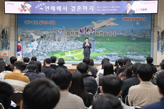 [코리아 이슈저널=김태훈 기자] 대구 달서구는 지난 5일 구청 2층 대강당에서 미혼 남녀, 청년등을 대상으로 결혼공감토크를 운영했다.