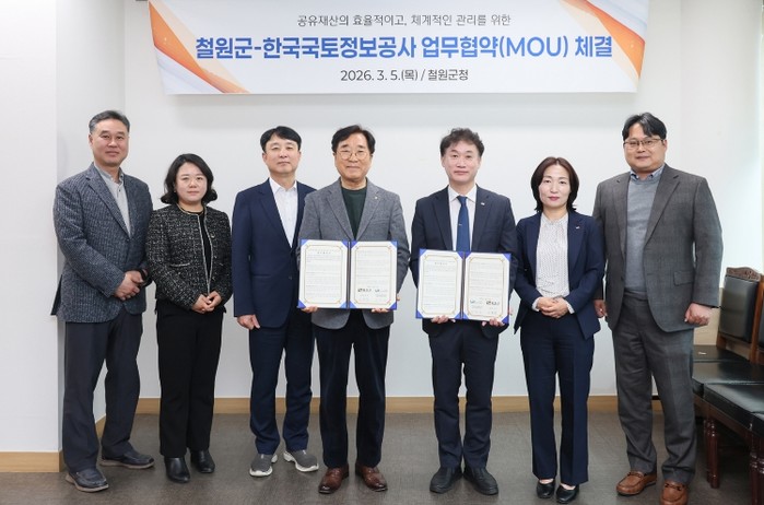 [코리아 이슈저널=최제구 기자] 철원군은 3월 5일 철원군청에서 한국국토정보공사(LX) 강원지역본부와‘공유재산 정밀 실태조사 업무협약(MOU)’을 체결했다.