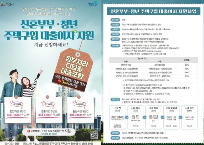 2024년 7월 1일 이후 주택을 구입한 19~39세 익산 거주 청년은 대출 잔액 1억 원 내에서 연 최대 300만 원의 이자를 지원받을 수 있다.