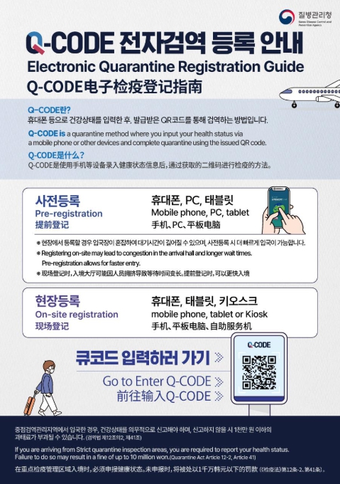 중점검역관리지역을 체류 또는 경유하여 입국하는 사람은 Q-CODE 또는 건강상태질문서를 통해 검역관에게 건강상태를 신고해야 하는데, 종이 건강상태질문서 대신 사전에 발급받은 QR코드를 통해 입국 시신속하고 정확한 검역 조사를 받을 수 있다.