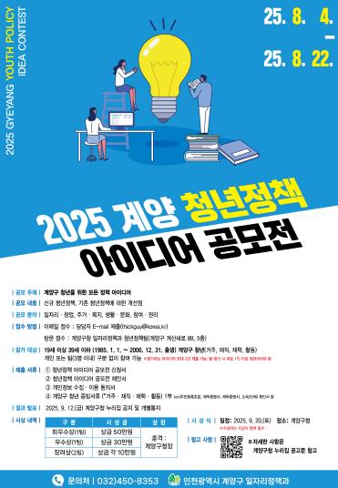 [코리아 이슈저널=홍춘표 기자] 인천광역시 계양구가 청년들의 참신한 생각을 정책으로 실현하기 위해 ‘2025 계양 청년정책 아이디어 공모전’을 개최한다.