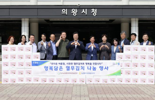 [코리아 이슈저널=홍춘표 기자] 의왕시는 지난 9일 NH농협 IT사랑봉사단으로부터 무더운 여름철을 보내고 있는 어르신들의 지원을 위한 열무김치 120박스(5kg 상당)를 기탁받았다고 밝혔다.