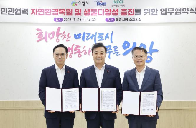 [코리아 이슈저널=홍춘표 기자] 의왕시는 지난 9일 시청 소회의실에서 현대로템(주)·한국환경보전원과 ‘자연환경복원 및 생물다양성 증진을 위한 업무협약’을 체결헀다.