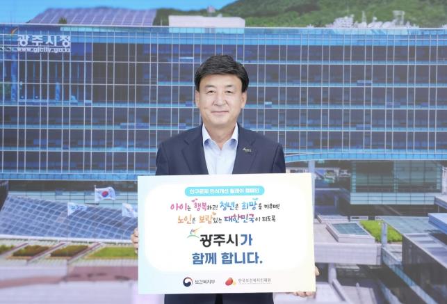 [코리아 이슈저널=홍춘표 기자] 광주시는 지난 25일 저출생과 고령화 등 인구 감소 문제에 대한 국민적 공감대 형성과 사회적 인식 확산을 위한 ‘인구문제 인식 개선 릴레이 캠페인’에 동참했다.