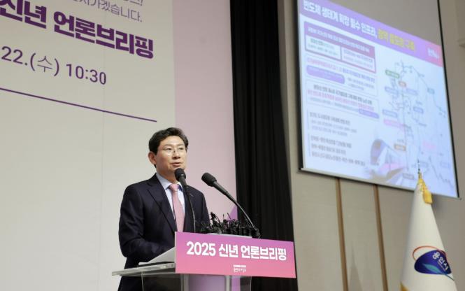 | ▲ 올해 1월 22일 신년 언론브리핑에서 광역 철도망 구축 계획을 설명하고 있는 이상일 용인특례시장 |