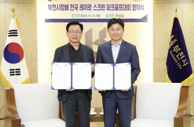 [코리아 이슈저널=홍춘표 기자] 부천시는 8월 21일 ㈜국제파크골프와 ‘부천시장배 전국 레저로 스크린 파크골프대회’ 개최를 위한 업무협약을 체결했다. 이번 협약은 대회의 성공적인 추진과 지역 스포츠 문화 발전을 위해 마련됐다.