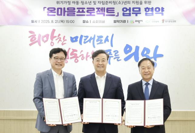 [코리아 이슈저널=홍춘표 기자] 의왕시는 8월 21일 시청 소회의실에서 국제구호개발 NGO 희망친구 기아대책(회장 최창남), 경기중앙교회(담임목사 이춘복)와 「온마을프로젝트」 업무협약을 체결했다.