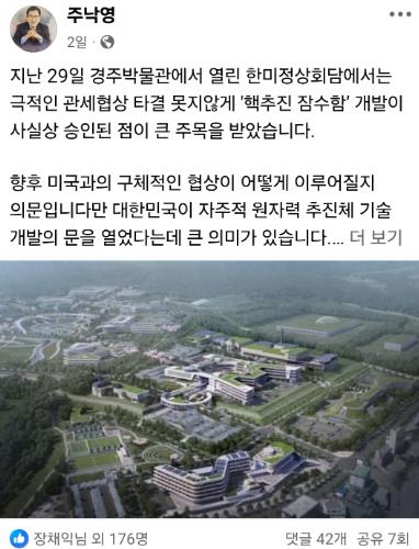 [코리아 이슈저널=김태훈 기자] 주낙영 경주시장이 최근 자신의 사회관계망서비스(SNS)에 “감포에 건립 중인 문무대왕과학연구소가 향후 핵추진 잠수함 추진체 기술의 기반이 될 수 있다”고 게시했다.