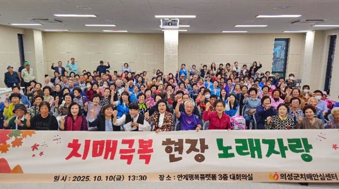 [코리아 이슈저널=김태훈 기자] 의성군은 지난 10일 안계행복플랫폼 3층 대회의실에서 치매보듬마을, 우리마을 예쁜치매쉼터, 안계치매단기쉼터, 안계노인복지관 이용자 등 지역 주민 110여 명이 참석한 가운데'치매극복 현장 노래자랑'행사를 성황리에 개최했다고 밝혔다.