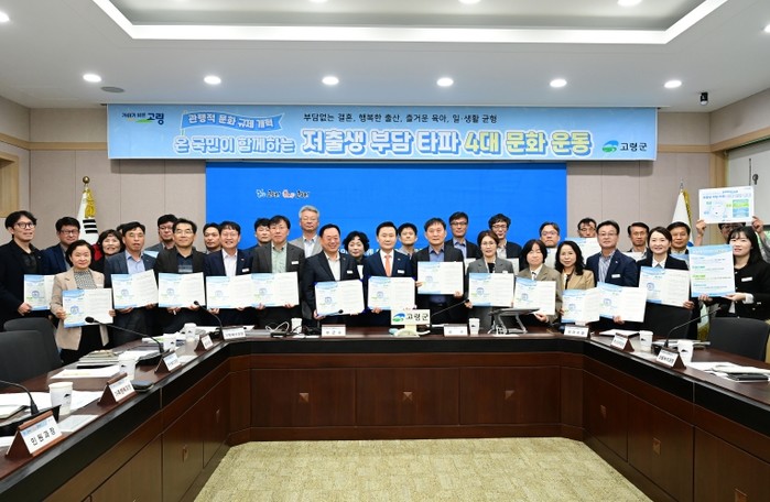 고령군(군수 이남철)은“저출생과 관련해 사회 전반에 퍼져 있는 인식을 개선하는 것이 무엇보다 중요하다”며 “이번 4대 문화운동을 간부들이 먼저 실천함으로써 본보기가 되고, 향후 군민 모두가 함께 참여하는 캠페인으로 확산되도록 노력하겠다”고 밝혔다.