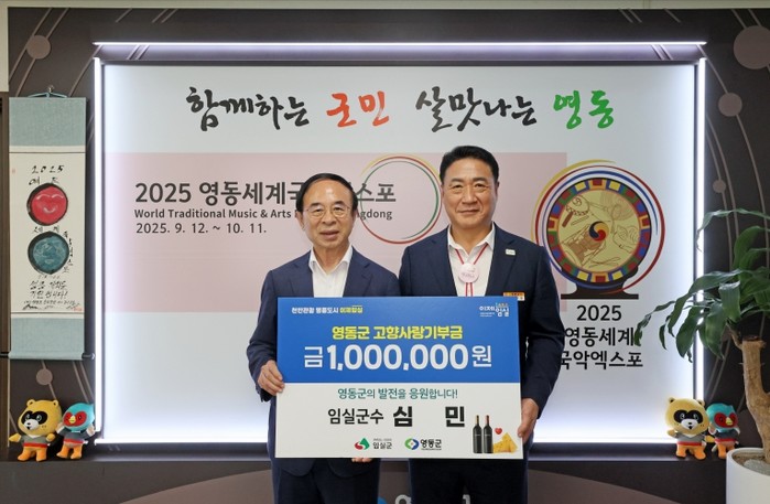[코리아 이슈저널=김종오 기자] 임실군 심 민 군수가 충북 영동군에 고향사랑기부금 100만원을 기탁하며 자매결연 도시 간의 우정을 다시 한번 확인했다.