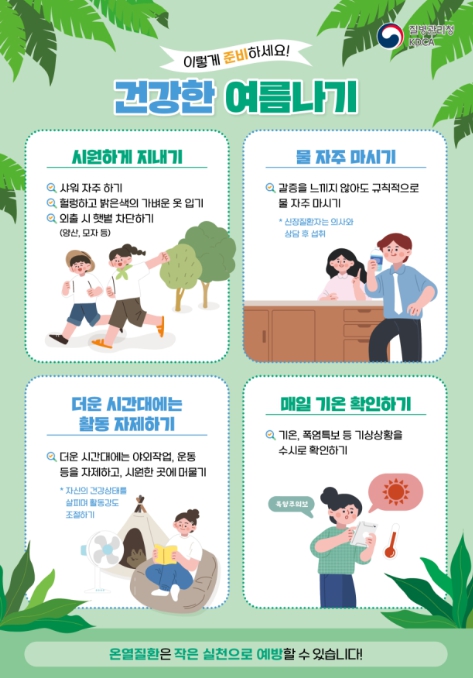 질병관리청, 33.3℃ 이상일 때 온열질환자 급증…예방수칙(물, 그늘, 휴식) 준수 당부