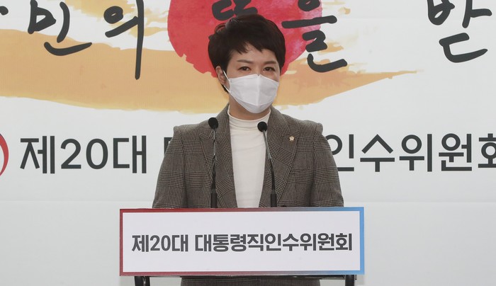 | ▲ 김은혜 대통령 당선인 대변인이 29일 서울 종로구 통의동 금감원 연수원에 마련된 제20대 대통령직인수위원회 브리핑룸에서 브리핑하고 있다. 2022.3.29 [인수위사진기자단] |