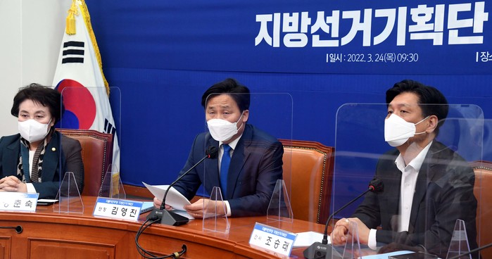 ▲ 24일 국회에서 열린 더불어민주당 지방선거기획단 1차회의에서 김영진 단장이 인사말을 하고 있다. 2022.3.24 [국회사진기자단]
