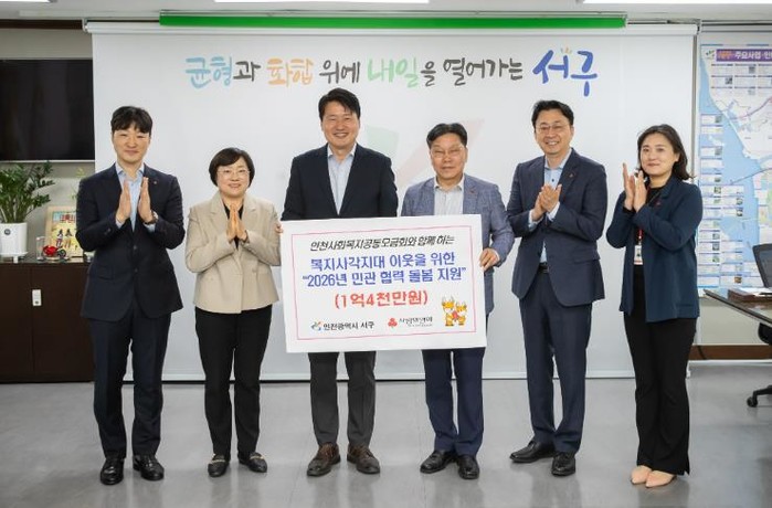[코리아 이슈저널=홍춘표 기자] 인천 서구는 27일, 인천사회복지공동모금회와 함께 ‘2026년 민관협력 돌봄 지원’ 전달식을 진행했다.