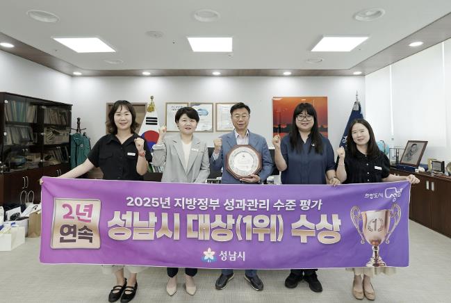 [코리아 이슈저널=홍춘표 기자] 성남시는 ㈔한국평가감사연구원이 주관한 ‘2025년 지방정부 성과관리 수준 평가’서 전국 1위를 차지해 대상을 받았다고 28일 밝혔다.