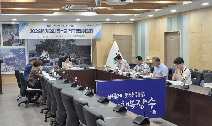 [코리아 이슈저널=김종오 기자] 장수군은 지난 24일 군청 회의실에서 ‘2025년 제2회 장수군 적극행정위원회’를 열고, 2025년 상반기 적극행정 우수사례 3건과 우수공무원 8명을 최종 선정했다고 밝혔다.
