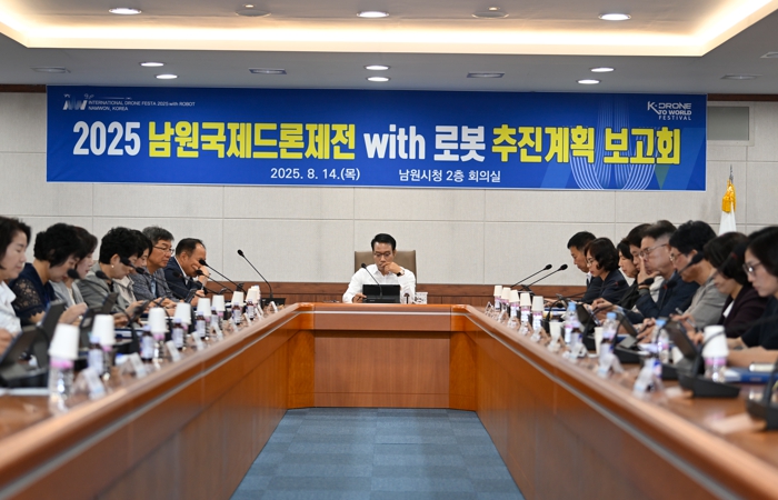 [코리아 이슈저널=김종오 기자] 전북특별자치도 남원시는 8월 14일, 시청 회의실에서 ‘2025 남원국제드론제전 with 로봇’ 세부추진 보고회를 개최하고 준비에 박차를 가하고 있다.