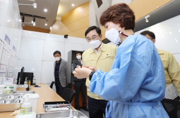 모의훈련 상황은 하루 800명 접종, 화이자 일반 접종 30인의 방문을 가정했으며 평가위원별 평가의견 청취 및 질의응답, 종합토의 등 시-구 합동 평가를 통해 만에 하나 미진한 부분들이 없는지 꼼꼼히 살폈다.