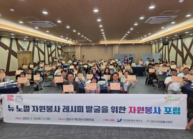 [코리아 이슈저널=홍춘표 기자] 연수구 자원봉사센터는 지난 7월 19일에 연수구제2청사 대회의실에서 자원봉사단체 및 자원봉사자 100여 명이 참석한 가운데 ‘뉴 노멀 자원봉사 레시피 발굴을 위한 자원봉사 포럼’이 지역 내 다양한 봉사단체의 활발한 참여 속에 성황리에 마무리 됐다고 밝혔다.