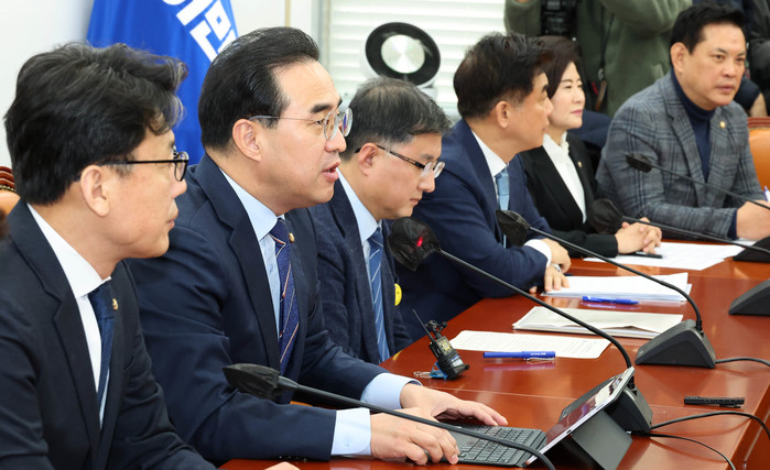 오영환 원내대변인은 회의 후 기자들과 만나 "내일 김 여사 주가조작 진상조사 태스크포스(TF)가 첫 회의를 한다"며 "공정과 상식에 부합하지 않는 검찰의 수사행태 때문에라도 특검 도입은 불가피하다"고 밝혔다.