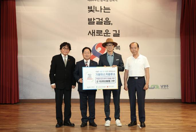 [코리아 이슈저널=홍춘표 기자] 남양주시는 15일 제80주년 8.15 광복절 경축식에서 ㈜기원위스키증류소가 저소득 독립유공자 유족 지원을 위해 기부금 1천만 원을 남양주시복지재단에 전달했다고 밝혔다.