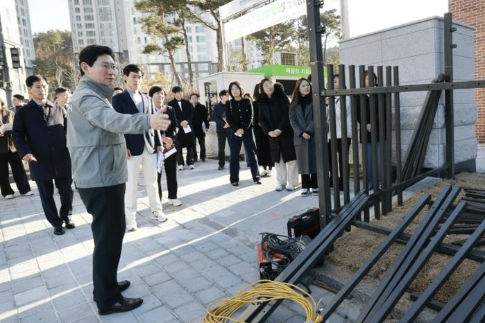 학부모들은 등하교 시간 교통지도 인력 배치와 정문 옆 외벽 난간(옹벽) 안전장치 설치, 스쿨존 지정 등을 이 시장에 요청했다.