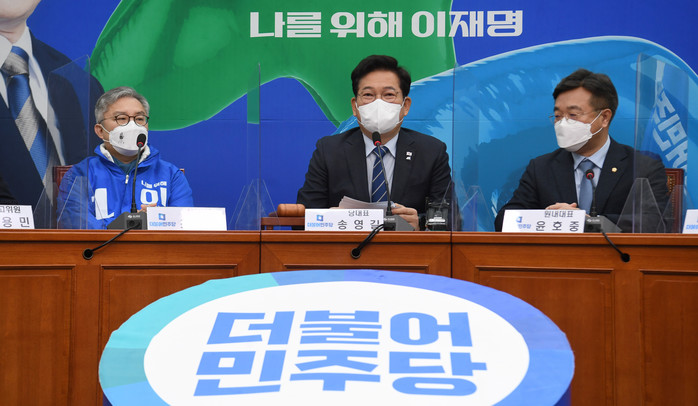 | ▲ 더불어민주당 송영길 대표(가운데)가 22일 서울 여의도 국회에서 열린 최고위원회의에서 발언하고 있다. 2022.2.22 [국회사진기자단] |