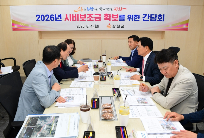 [코리아 이슈저널=홍춘표 기자] 강화군은 지난 4일 내년도 시비 보조금 확보를 위하여 한승희 강화군의회 의장과 윤재상 인천시의회 의원을 초청해 정책간담회를 가졌다고 밝혔다.