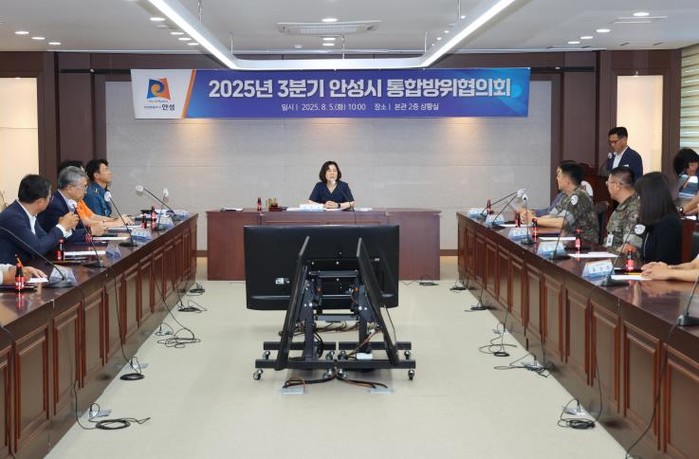 [코리아 이슈저널=홍춘표 기자] 안성시는 8월 15일, 시청 2층 상황실에서 김보라 시장과 안성시 통합방위협의회 위원 10명이 참석한 가운데 ‘2025년 3분기 통합방위협의회’를 개최했다.
