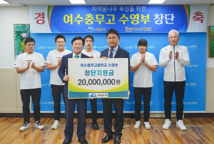 [코리아 이슈저널=김종오 기자] 여수시는 지난 4일 시청 시장실에서 여수충무고등학교 수영부 선수단에게 학교 운동부 창단지원금 2천만 원을 전달했다.