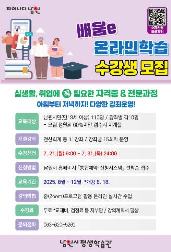 | ▲ 남원시평생학습관, 2025년 배움e 온라인학습 수강생 모집 |