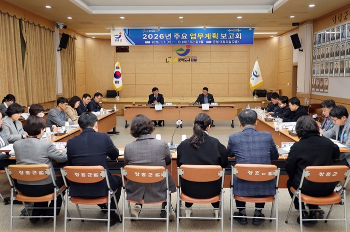 [코리아 이슈저널=김종오 기자] 장흥군이 지난 7일부터 13일까지 군청 대회의실에서 ‘2026년 주요 업무계획 보고회’를 개최했다고 밝혔다.