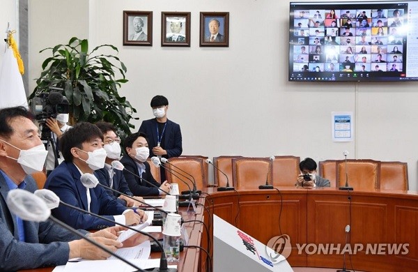 | ▲이준석 국민의힘 대표가 28일 오전 서울 여의도 국회에서 열린 이준석과 유학생이 함께하는 ‘이유’있는 이야기 간담회에서 유학생들과 화상으로 이야기를 나누고 있다[출처=연합뉴스] |