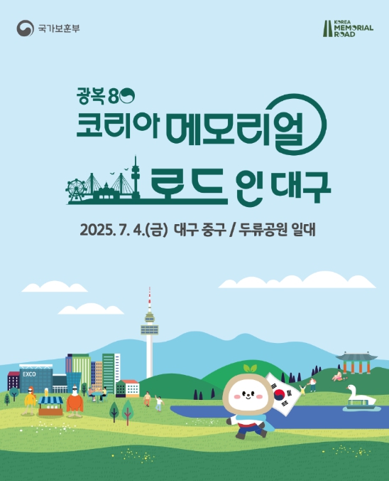 [코리아 이슈저널=김윤영 기자] 국가보훈부는 광복 80주년을 맞아 전국의 독립운동 사적지 등 보훈 순례길을 따라 걷는 ‘코리아 메모리얼 로드(Korea Memorial Road)’의 두 번째 행사로 4일 대구 중구에서 ‘광복80 코리아 메모리얼 로드 인 대구’를 개최한다고 밝혔다.