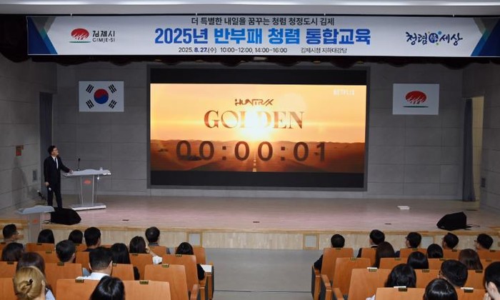 [코리아 이슈저널=김종오 기자] 김제시는 27일 시청 대강당에서 정성주 시장과 간부공무원(4급 상당)을 비롯해 신규 임용자·승진자를 포함한 600여 명의 직원을 대상으로 '2025년 반부패·청렴 통합교육'을 오전과 오후 두 차례에 걸쳐 진행했다고 밝혔다.