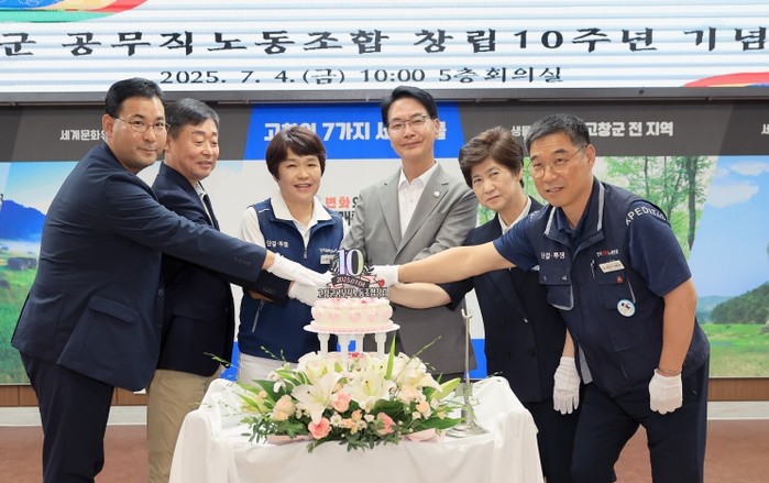 [코리아 이슈저널=김종오 기자] 전국공무직노동조합 고창군지부(지부장 최선례)가 4일 오전 10시 군청 5층 회의실에서 창립 10주년 기념행사를 열었다.