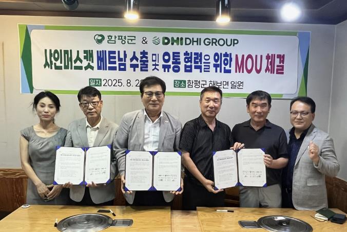 함평군은 26일 “DHI그룹이 지난 22일 해보면 함평천지꽃무릇수출포도영농조합법인 농장을 방문해 품질을 직접 확인한 후 10만 달러 규모의 샤인머스캣 베트남 시장 공급 계약을 체결했다”고 밝혔다.