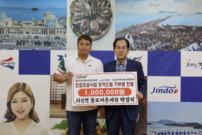 [코리아 이슈저널=김종오 기자] 진도군은 지난 22일 의신면 황모어촌계장 박경석 씨가 위기가구와 복지 사각지대 발굴, 지원을 위한 연합모금 사업인 ‘모아드림’에 기부금 100만 원을 기탁 했다고 밝혔다.