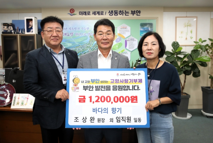 | ▲ 바다의향기 조상완 원장 외 임직원, 부안군 고향사랑기부금 120만원 상호 기부 |