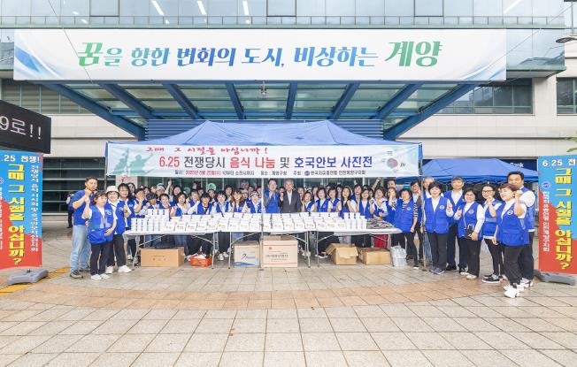 [코리아 이슈저널=홍춘표 기자] 한국자유총연맹 인천계양구지회는 25일 계양구청 북측광장에서 ‘6·25 전쟁당시 음식 나눔 및 호국안보 사진전’을 개최했다고 밝혔다.