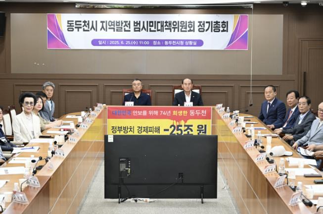 [코리아 이슈저널=홍춘표 기자] 동두천시 주요 현안 사업의 강력한 시민 운동 추진단체인‘동두천시 지역발전 범시민대책위원회’는 지난 25일 동두천시청 상황실에서 2025년 정기총회를 개최했다고 밝혔다.