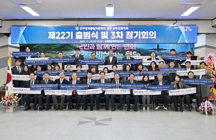 [코리아 이슈저널=김태훈 기자] 민주평화통일자문회의 군위군협의회(협의회장 전기식)는 11월 19일 오후 16시 군위군청 대회의실에서 군위군수, 자문위원 등 50명이 참석한 가운데 ‘제22기 출범식 및 2025년 3차 정기회의’을 개최했다.
