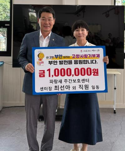 파랑새주간보호센터 임직원, 부안군 고향사랑기부금 100만원 기탁
