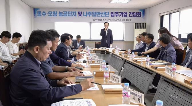 | ▲ 나주시가 산업통상자원부가 주관한 국비 공모에 최종 선정됐다. 사진은 동수오량농공단지 입주기업 간담회 모습(사진제공-나주시) |