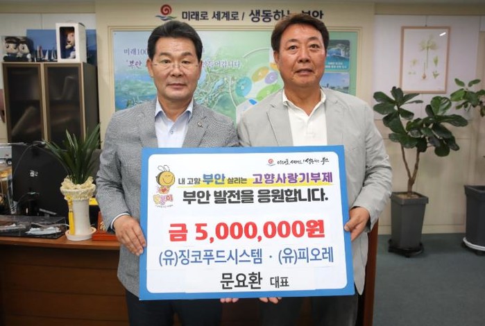 부안군, 징코푸드시스템‧피오레 문요환 대표, 고향사랑기부금 500만 원 기탁